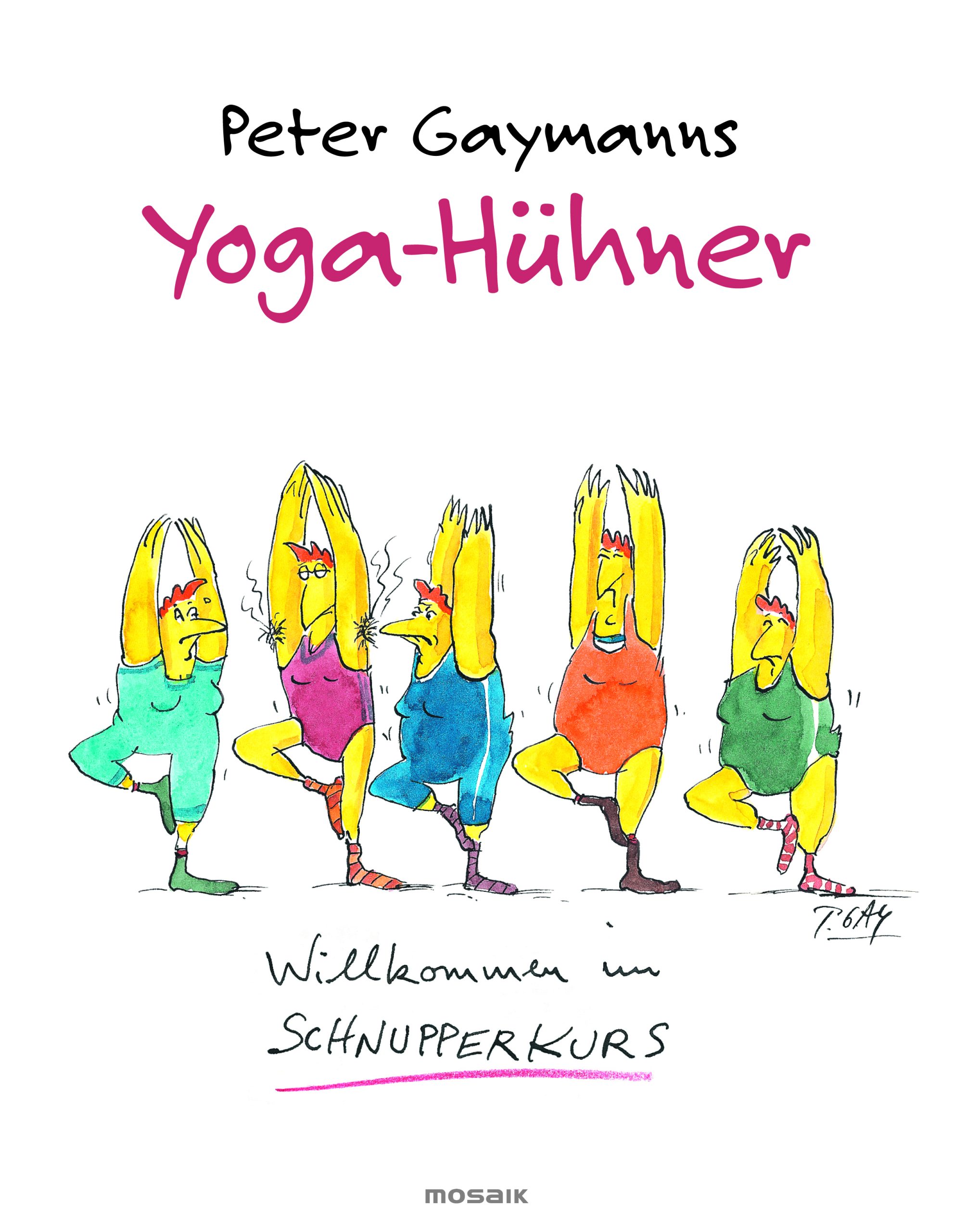 Peter Gaymann, Yoga-Hühner, Willkommen im Schnupperkurs, E-Buch, Sprache: Deutsch, Verlag: Mosaik im Konzern Penguin Random House Verlagsgruppe GmbH, München, 1. Auflage 24.9.2012, ISBN: 978-3-641-08302-1, Preise: 12,99 EUR (Deutschland, Österreich), 16 SFr